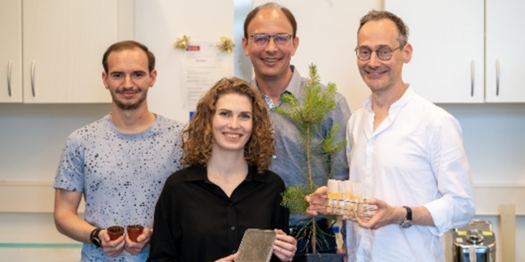 Bildunterschrift (v.r.n.l.): Prof. André Fleißner, Prof. Bernard Slippers, Anne Oostlander und Christiaan Grobler. Bildnachweis: Ahmed Nassef/TU Braunschweig