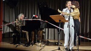 Begleitet wurden sie von Burkhard Bauche am Klavier. Er führte auch als Moderator durch den Abend, gemeinsam mit Sven-David Müller dem Verantwortlichen für das Programm.