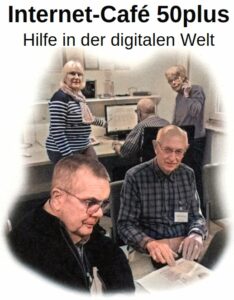 Wir sind eine Gruppe von etwa zwanzig 60- bis über 90-jährigen ehrenamtlich tätigen Frauen und Männern und betreiben seit Oktober 1999 das „Internet-Café 50plus“. Es ist ein Ort des Austausches und der Beratung zu allen Belangen der digitalen Welt für Seniorinnen und Senioren. Wir versuchen, mit den Ratsuchenden Antworten auf Ihre Fragen zur Bedienung von Smartphone, Tablet oder Computer zu finden und Hilfe zur Selbsthilfe zu leisten. Wir machen das in intensiver 1-zu-1-Beratung in angenehmer Atmosphäre, in der auch Zeit für ein Schwätzchen bleibt.